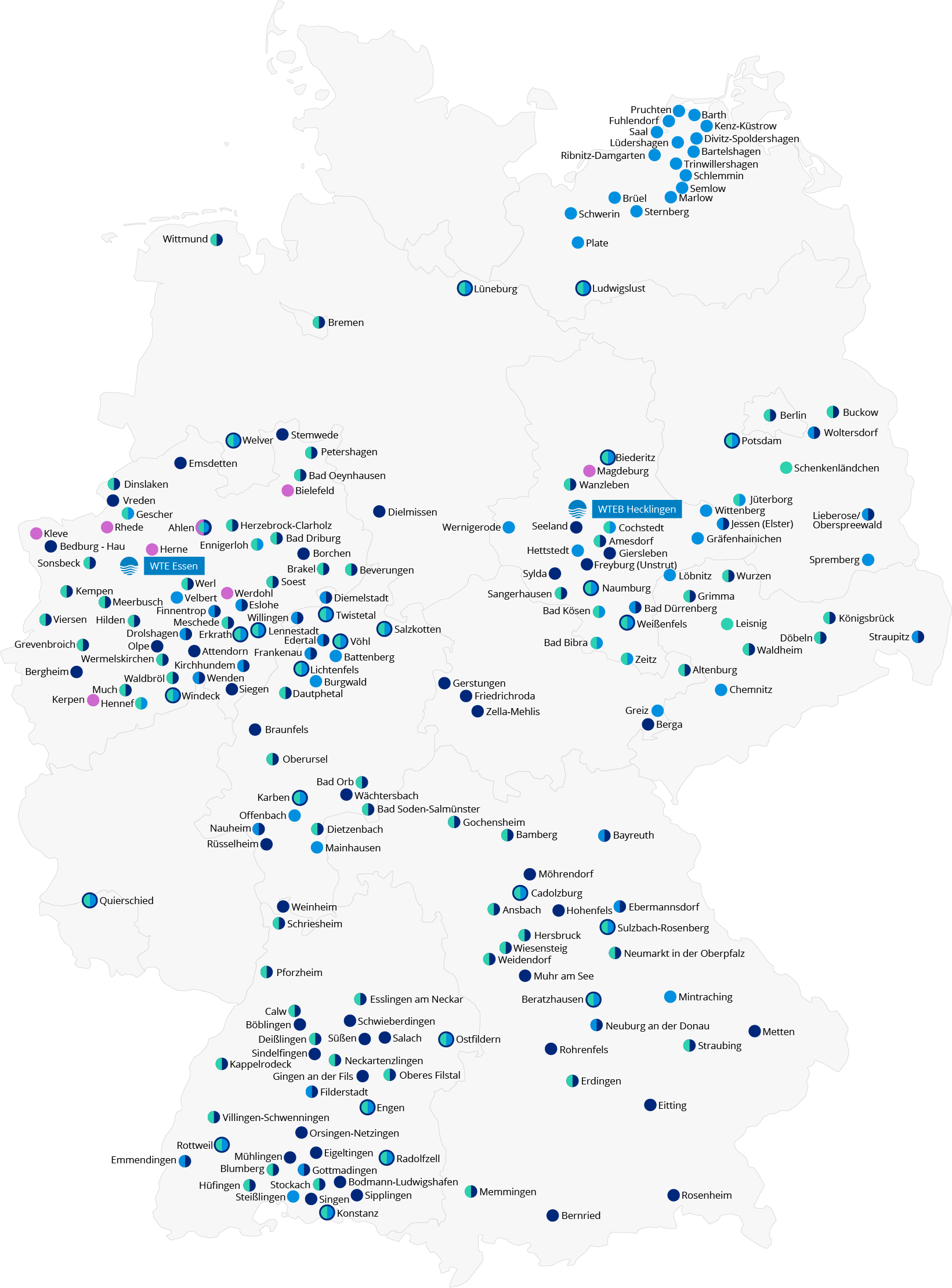 Dabei haben wir über 300 Projekte realisiert. Darunter befinden sich Entsorgungsgebiete mit unterschiedlichsten Rahmenbedingungen vom ländlichen Bereich bis hin zur Bundeshauptstadt Berlin.